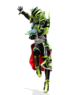 - 决胜技:「暴击献祭()」:摁动「Gashacon缺陷护罩Ⅱ()」的A键,伴随着音效「决胜技()!」的响起,摁动B键,释放出巨大的回旋刃形状的绿色能量波挥出斩裂敌人