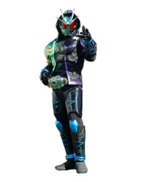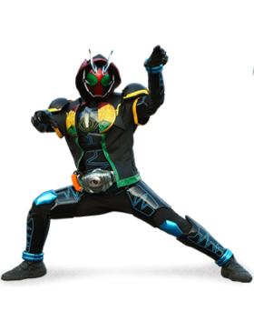 「欧米茄驱动()」:拉推「Ghost 驱动器()」的手柄后,高速空翻产生绿色巨风缠绕在脚上,以此使出必杀踢击。以W 疾风王牌的必杀技“Joker Extreme”的要领使出。