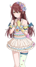 性格内向怕生,由于妹妹(甘奈:我要推广甜花的可爱及闪耀)邀请其一起成为偶像才参加了偶像试镜,在甄选会上被制作人搭话的时候还吓了一跳。尽管不知道偶像是怎么样的职业,对于自己能不能做好偶像也没有自信,但是为了相信自己的妹妹和制作人而决定要好好努力。少女心相对于甘奈,较为内敛。