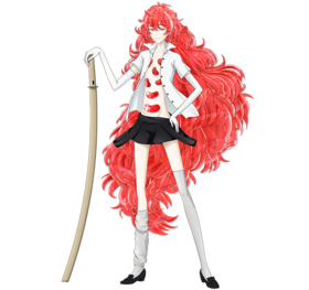 帕德玛刚玉有着超长的红色卷发,身上有许多空洞,穿着与其他宝石差不多的夏季制服。