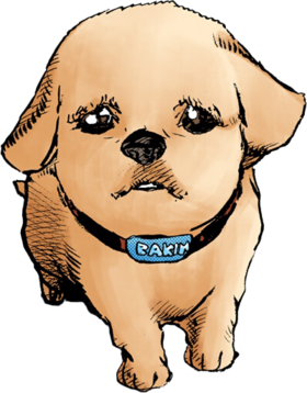 在故事中,巴金作为幼犬被岸边露伴收养。露伴和巴金一起散步到六壁神社,此时露伴听见神社里的神树发出奇怪的声音。就在他抱著巴金检查神树时,被寄宿在神树镜子里的恶神薮箱法师冒用了身份,于是巴金与这个假露伴共同生活了三个月。与此同时,巴金随着年纪而开始长出牙齿并毁掉了眼前所有的玩具。当薮箱法师在10月7日回到神树时,把巴金送回了露伴的身边。 露伴想通过移动镜子消除薮箱法师犯下的恶行,但在摆弄镜子时不慎让其再度逃脱,导致其继续以露伴的身份生活三个月。在露伴于2022年1月返回家中时,已经是中型犬身形的巴金开始变得凶残,不仅杀死了夏娃饲养的鳄鱼,还打算袭击露伴,露伴示出了项圈,但巴金在认出了主人后却对他相当恐惧,这让露伴了解巴金到在这段期间遭到了薮箱法师的虐待。在露伴成功消除薮箱法师犯下的恶行后,巴金又恢复了以往温柔,并因为京香编辑抚摸下巴做出了愉快的反应。 |