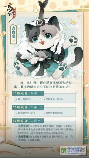 - 谢道韫(芝兰玉树):谢玄【觉醒:雪浪云涛】提升自身生命上限时,同时为谢道韫提升5%生命上限并同比提升当前生命,持续至战斗结束,不可驱散。