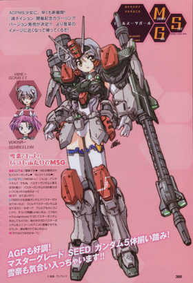 暴风子为地球联合军所属的“大西洋联邦”与曙光社共同开发的远距离炮击战型MS少女,原本属于联合军的5台“G”兵器之一,后被自由条约黄道联盟所抢夺。