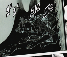 大约300年前,一位叫山村仁左右卫门的画师从某棵树干中提取了一种未知的黑色颜料,然而这种颜料也能显得奇异地明亮。仁左右卫门将这种颜料应用在若干件画作中,只有他知道这种颜料的存在。但那棵树是一棵2000岁的古树,砍伐那棵树是明令禁止的行为。因此仁左右卫门的行为引起了当地领主的愤怒,刚与岸边奈奈濑结婚不久的他就遭到了领主的处刑。 仁左右卫门死后,关于他的诅咒的传说马上传播开来,他的所有作品也都被烧毁。不过仁左右卫门事先把名为《月下》的画作藏在了安全之处,后来一位地主在谷仓深处找到了该画作。 1989年,卢浮宫的馆长将其从日本运到了卢浮宫中,并保存在废弃了10年的Z-13储藏室。在某个时候,馆长被画作杀害。 过了20多年,27岁的岸边露伴想起10年前藤仓奈奈濑和自己提及的画作,动念前往巴黎参访卢浮宫美术馆。得到参观许可后,露伴在一名翻译、一位亚洲艺术部部长和两位保安部的消防员的带领下前往Z-13储藏室。进入储藏室后,一位消防员打算将画移出来,在碰到画的一瞬间头部被击穿,尸体飞到了天花板上。亚洲艺术部部长、另一位消防员和翻译随后也依次被《月下》所召唤的死者杀死。岸边奈奈濑从画中出现,向露伴解释了画作的能力。在被鬼魂杀死前,露伴对自己使用了天堂之门,通过暂时消除记忆的方式脱身。 后来,露伴听说该画作在被深入科学分析后烧毁,但露伴无法确认这是否属实。 |