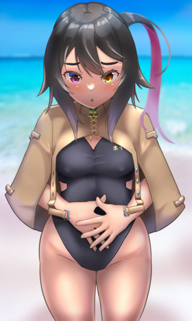- (二式炮战车)少数由我经手的日系角色,加入了昭五式军服以及佩刀的要素使其有一种陆军骑兵般的风采,因为参与了南方战场所以加入了泳装和晒痕的元素,虽然看似是黑肉但是其实是晒黑的本人并不是黑皮肤的喔~