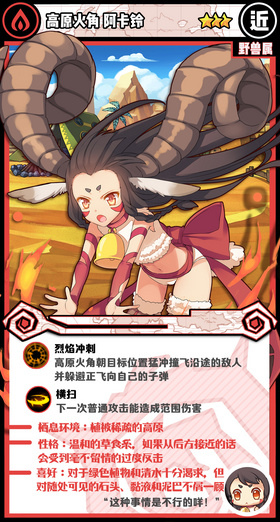 - 生活在高原的大角羊,基本是温和的食草系,通过双蹄,摩擦地面,能够有限地操纵火焰。