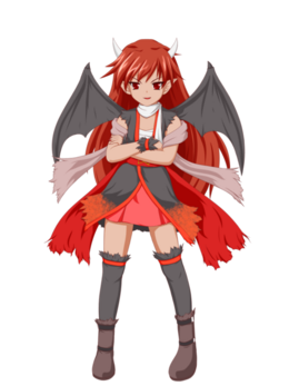 | 萌点 | 女神、恶魔、傲娇、绝对领域、及膝袜、缠胸布、围巾、手环、长指甲、翅膀、长发、角 |
