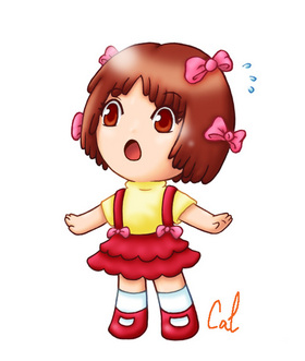 头上通常带有四个蝴蝶结,穿着胸前有两个蝴蝶结的、裙摆多层的背带裙。