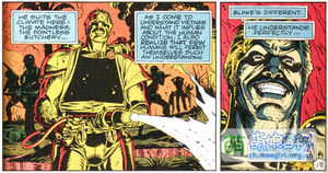 在曼哈顿博士如神灵般的力量迫使越南人完全投降后,布雷克面对着一名怀上他儿子的越南妇女,他直言不讳地告诉她,他计划立即离开她和越南。她大发雷霆,用啤酒瓶划伤了他的脸(这是布雷克脸上的第二道伤口)两道疤痕,给人的感觉是他一直在开玩笑@小丑,愤怒之下的布雷克开枪杀死了她。