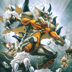- XYZ:4星怪兽×2。1回合1次,把这张卡1个XYZ素材取除才能发动。从卡组把1只爬虫类族怪兽加入手卡。