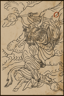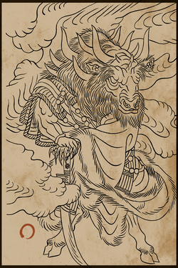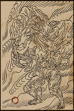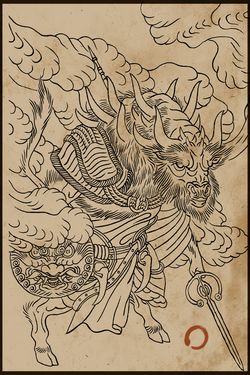 数百年前,天兵再次烧毁了花果山。得知大圣已死,许多猴子只得忍痛离开,另寻别处修行。念及大圣曾与牛魔王结义,不少猴子便往火焰山去投靠牛魔王。 牛魔王十分痛恨猴子,可这次他却额外开恩,收留了逃难而来的群猴。可火焰山火气蒸人,极贫极苦,还有时常来挑衅的妖魔,猴子们活得很艰难。幸而,土地公待他们极好,送吃送喝,猴子们便倚靠着他过活。 不想,时日不多,猴群却出现了瘟疫。猴子们开始不停地掉毛,皮肤溃烂,背上鼓起又大又黑的脓包,十分可怕。瘟疫极速扩散,许多猴子都病得生不如死。作为猴群的领袖,赤尻马猴下令将染病的猴子扔到了丹灶谷底,任由他们自生自灭。 被遗弃的病猴们,天天在谷底咒骂着昔日同伴,就在快病死之时,土地公带着灵丹妙药救起了他们。半旬后,他们的皮肤愈合了;月余,他们背上的脓包破裂,生出一对乌黑的羽翅。土地公细心教导他们如何飞腾,还接受了他们投诚的忠心,将他们纳入麾下,因他们排行第十,便被赐名行什。 行什接到的首件事务,便是清理赤尻马猴的营地。他们毫不留情地杀死了背叛者,只有技高一筹的赤尻马猴侥幸活了下来,但没人知道他逃去了哪里。 |