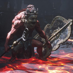 地罗刹是海罗刹的后代,他们出生在流亡的路上。因灵蕴不同于故乡,他们都没能长成海罗刹那巨大的身躯。虽是如此,地罗刹们效忠罗刹女的心,却与祖辈们一般。他们谨守铁扇仙定下的戒律,勤修术法,改掉了许多恶习。 民间有许多罗刹极好吃人肉的传说,是以火焰山附近的村庄,总以此为由将老人们送到石庙里当祭品。其实火焰山的罗刹们根本不吃人。非但如此,因其巨大的气力容易伤到凡人,罗刹女还让他们使一种特制的重盾,要求他们多守少攻。但若是把他们逼急了,他们也会使出些喷火的本事。 即便地罗刹已经做了许多改变,但人们看到他可怖的外貌,还是会被吓得惊叫乱逃。其实在地罗刹眼里,那些高喊高叫的凡人,又何尝不恐怖呢? |
