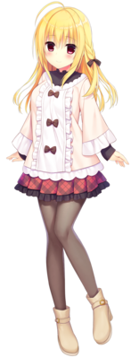 - ↑ 小鸡()谐音妃爱(),谐音和一头金发使得妃爱在各线中对小鸡玩偶()情有独钟