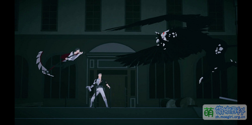 第四章,Qrow一路跟踪RNJR一行人,并一路将潜伏的Grimm一一击杀。到晚上,Qrow受Raven Branwen邀请进行了一次面谈。