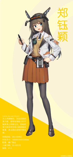 黄馥朔是妖都巴士创意台所创作的,浙江金华青年JNP6120FS型双层公路客车的拟人化萌娘。