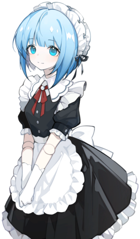 天空一样颜色的头发~ 雏菊一样颜色的眼睛~ 整洁简朴的女仆装~ 绝对对称的白袜子~ 所到之处,一尘不染,正可谓是,无敌的女仆! |